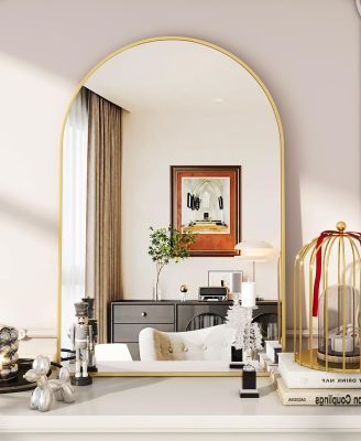 Elevate the aesthetic of your living space with our stunning Arched Wall Mirror. This 24 x 36 inch Arch Bathroom Mirror is designed to add a touch of elegance to any room. The Wall Mounted Vanity Mirror features a chic Arch Metal Frame in a luxurious gold finish, creating a modern and sophisticated look. Perfect…